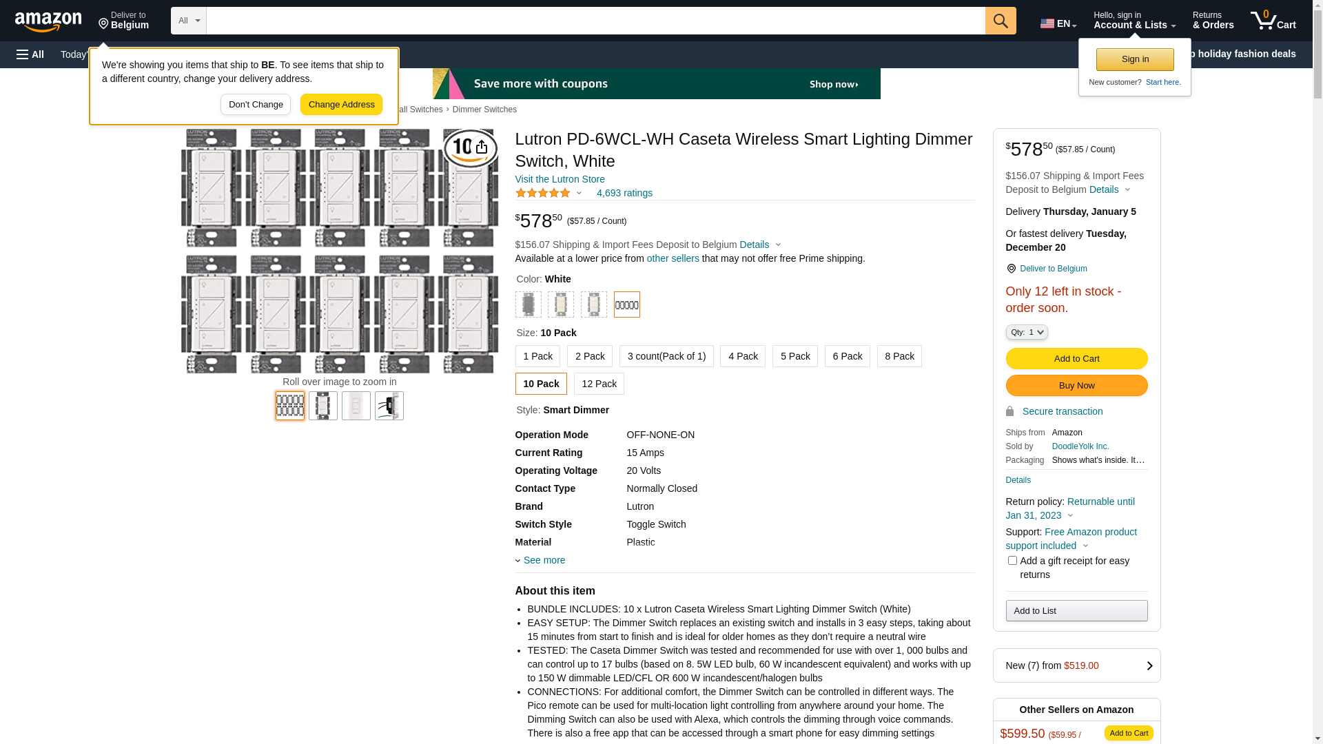 - INCLUDES: (12) white Caseta dimmer switches; coordinating wall plate sold separately