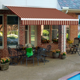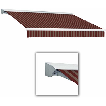 Awntech 12-Feet Destin LX with Hood Right Motor and Remote Retractable Acrylic Awning, 120-Inch Projection, Burgundy/Tan