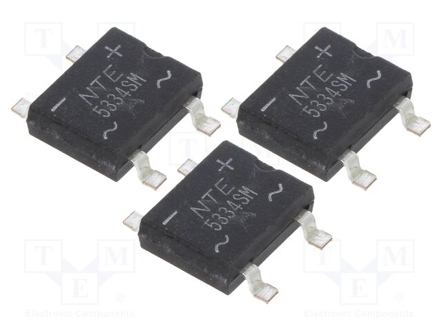 NTE Electronics NTE5334SM Silicon Bridge Rectifier, Single Phase, Full Wave, 1 Amp Average Rectified Output Current, 1000V Peak Repetitive Reverse Voltage (Pack of 3)