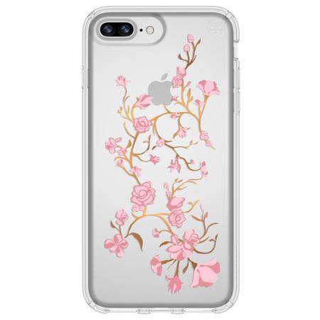 Speck iPhone 8 Plus Presidio Clear + Print Case, IMPACTIUM 8-Foot Drop Protected iPhone Case that Resists UV Yellowing, Golden Blossoms Pink/Clear