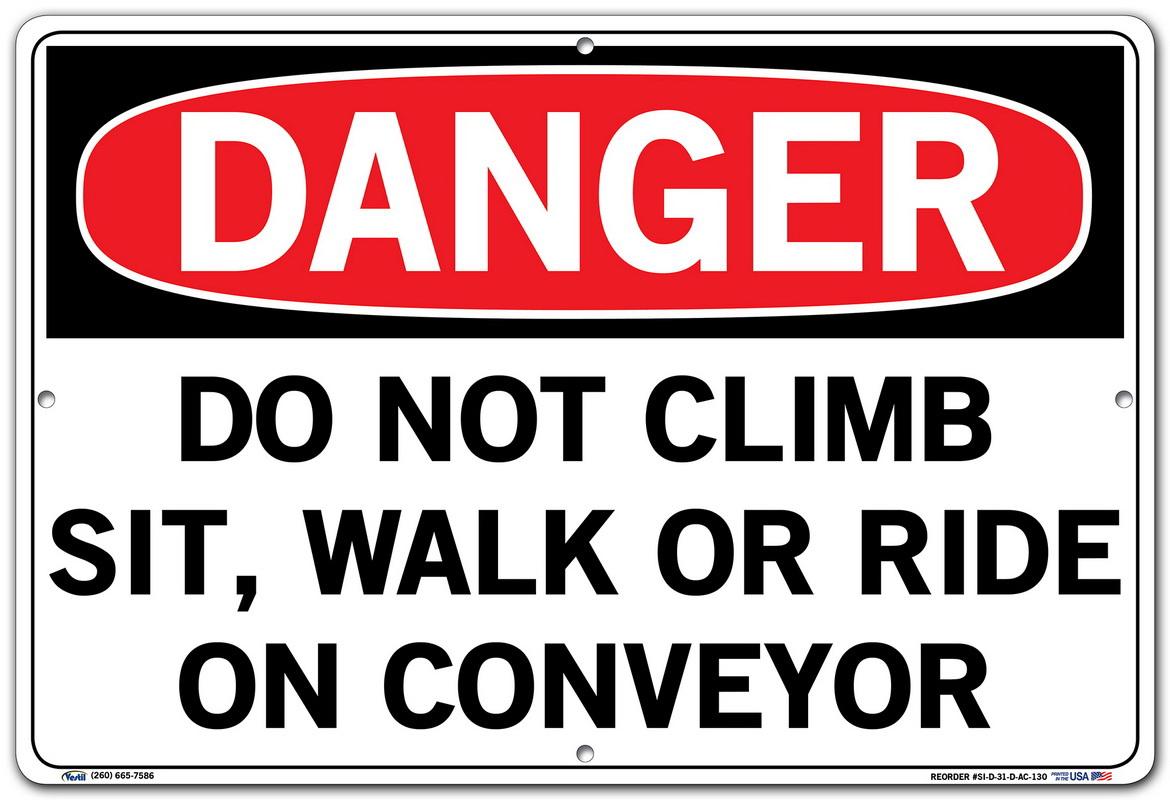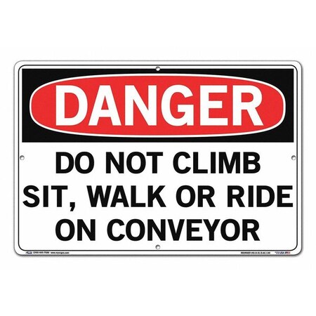 Vestil SI-D-31-D-AC-130 DO NOT CLIMB, SIT, WALK, OR RIDE ON CONVEYOR Danger Sign, Aluminum Composite, 0.130" Overall Size, 18.5" W x 12.5" H