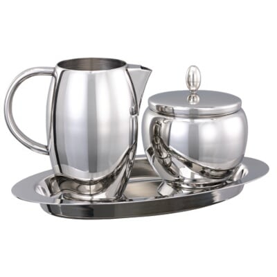 Service Ideas STCCRSGTRC Service Ideas STCCRSGTRC Sugar and Creamer Set with Tray, Polished Stainless