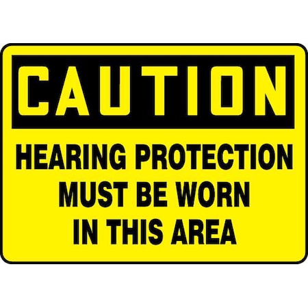 Accuform MPPE432VS Sign, Legend "Caution Hearing Protection Must BE Worn in This Area", 10" Length x 14" Width x 0.004" Thickness, Adhesive Vinyl, 10" x 14", Black on Yellow