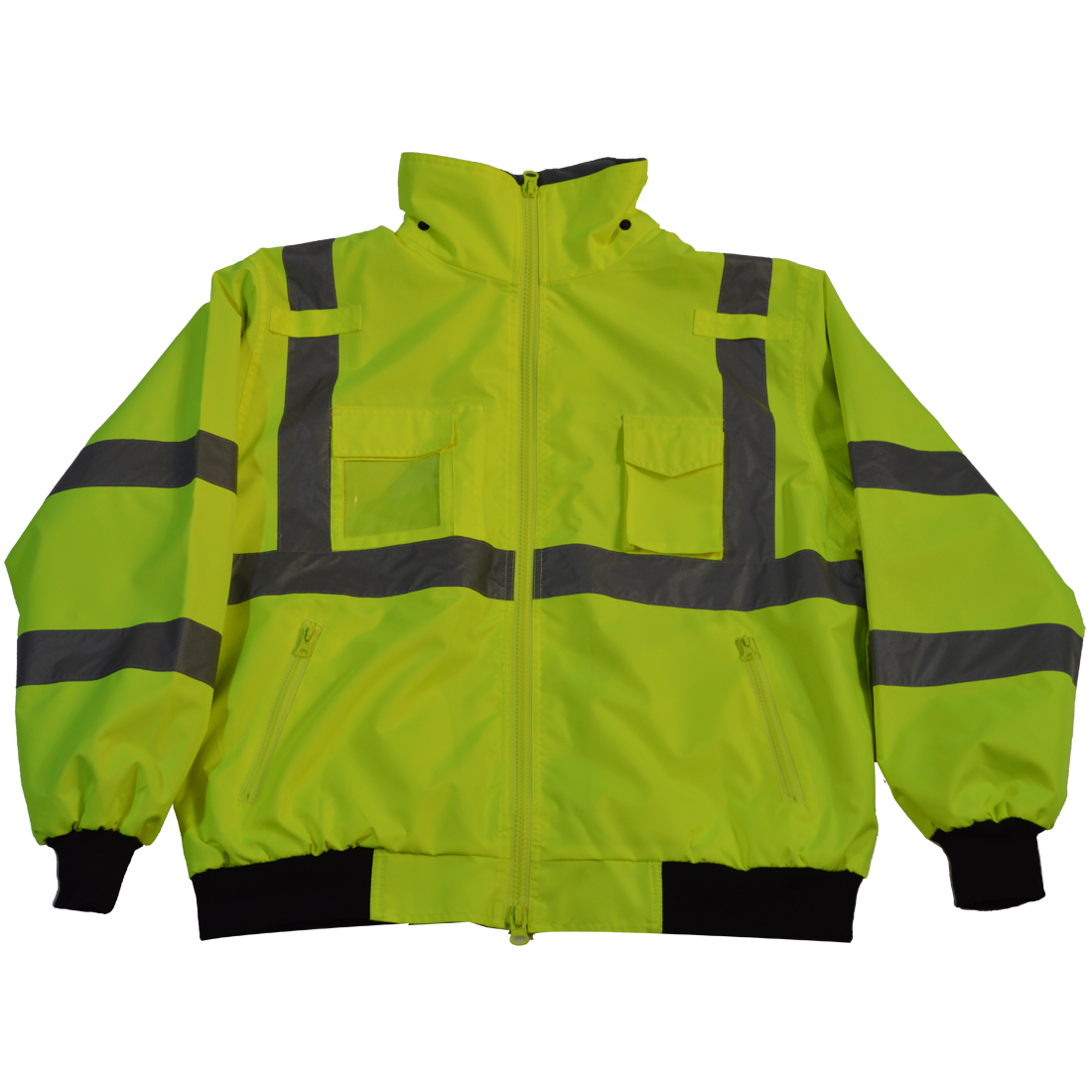 Petra Roc LBJ-C3-5X Waterproof Safety Bomber Jacket High-Vis Lime ANSI Class 3, with Removable Fleece Liner & Roll Away Hood, 5X
