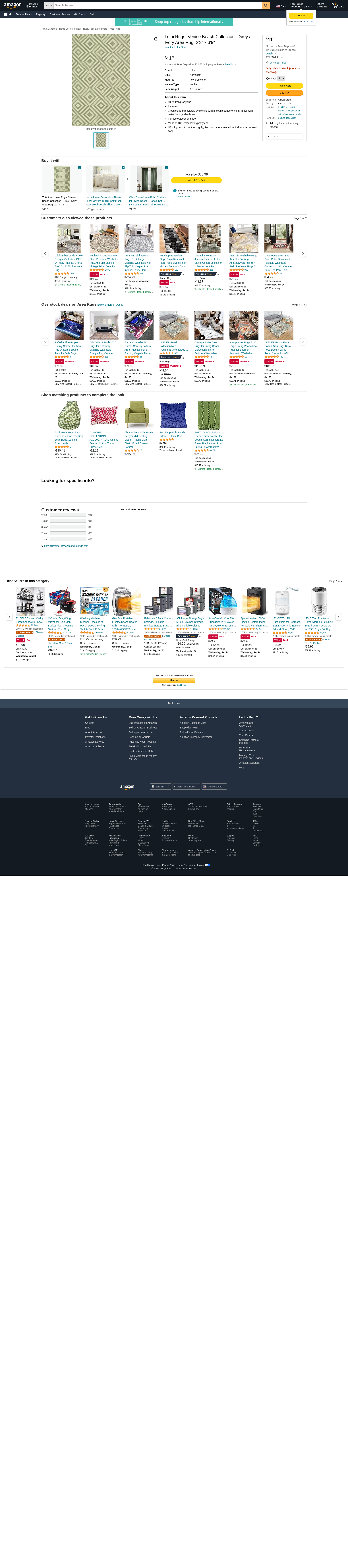 Loloi Rugs VENIVB-02GYIV2339 2 ft. 3 in. x 3 ft. 9 in. Venice Beach Rectangular Shape Hand Hooked Area Rug, Grey and