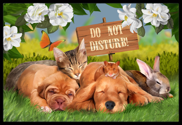 Caroline's Treasures PTW2048MAT Golden Retriever and Sharpei Do Not Disturb Doormat 18x27 Front Door Mat Indoor Outdoor Rugs for Entryway, Non Slip Washable Low Pile, 18H X 27W