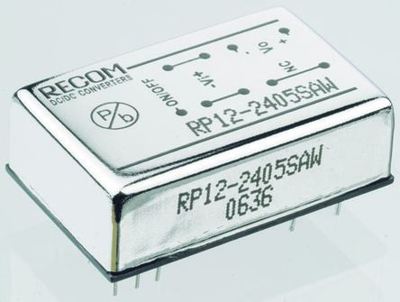 Recom Power Isolated Board Mount Dc/dc Converter, Dip, Through Hole, Fixed, 36 V, 9 V, 2 Rohs Compliant: Yes - RP12-2405DAW