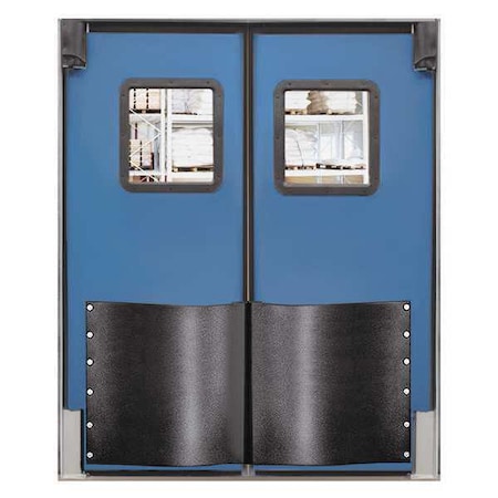 Swinging Door, Door Height 7 ft., Door Width 5 ft., Door Color Royal Blue, Swinging Door Material Polyethylene, Textured (Polyethylene Eggshell) Finish, Door Thickness 1-1/2 In., Number of Doors 2, Window Height 16 In., Window Width 16 In., Bumpers Included Yes, Door Seals Included Yes, Opening Height 7 ft., Opening Width 5 ft., Window Color Clear, Window Material Polycarbonate, Left and Right Jamb, Insulation Value 9.86, Standards NSF and USDA, Swinging Door Core Material Non-CFC Urethane Core Door Color : Royal Blue Bumpers Included : Yes Door Material : One Piece Molded Polyethylene Item : Swinging Door Finish : Textured (Polyethylene Eggshell) Insulation Value : 9.86 Door Height : 7 ft Includes : 24 in Spring Bumpers, Mounting Hardware Window Color : Clear Opening Height : 7 ft Window Included : Yes Window Material : Polycarbonate Number of Doors : 2 Opening Width : 5 ft Door Width : 5 ft Hinges : Left and Right Jamb Window Height : 16 in Swinging Door Core Material : Non-CFC Urethane Core Window Width : 16 in Swinging Door Material : Polyethylene Door Thickness : 1 1/2 in Standards : NSF and USDA Door Seals Included : Yes Country of Origin (subject to change) : United States