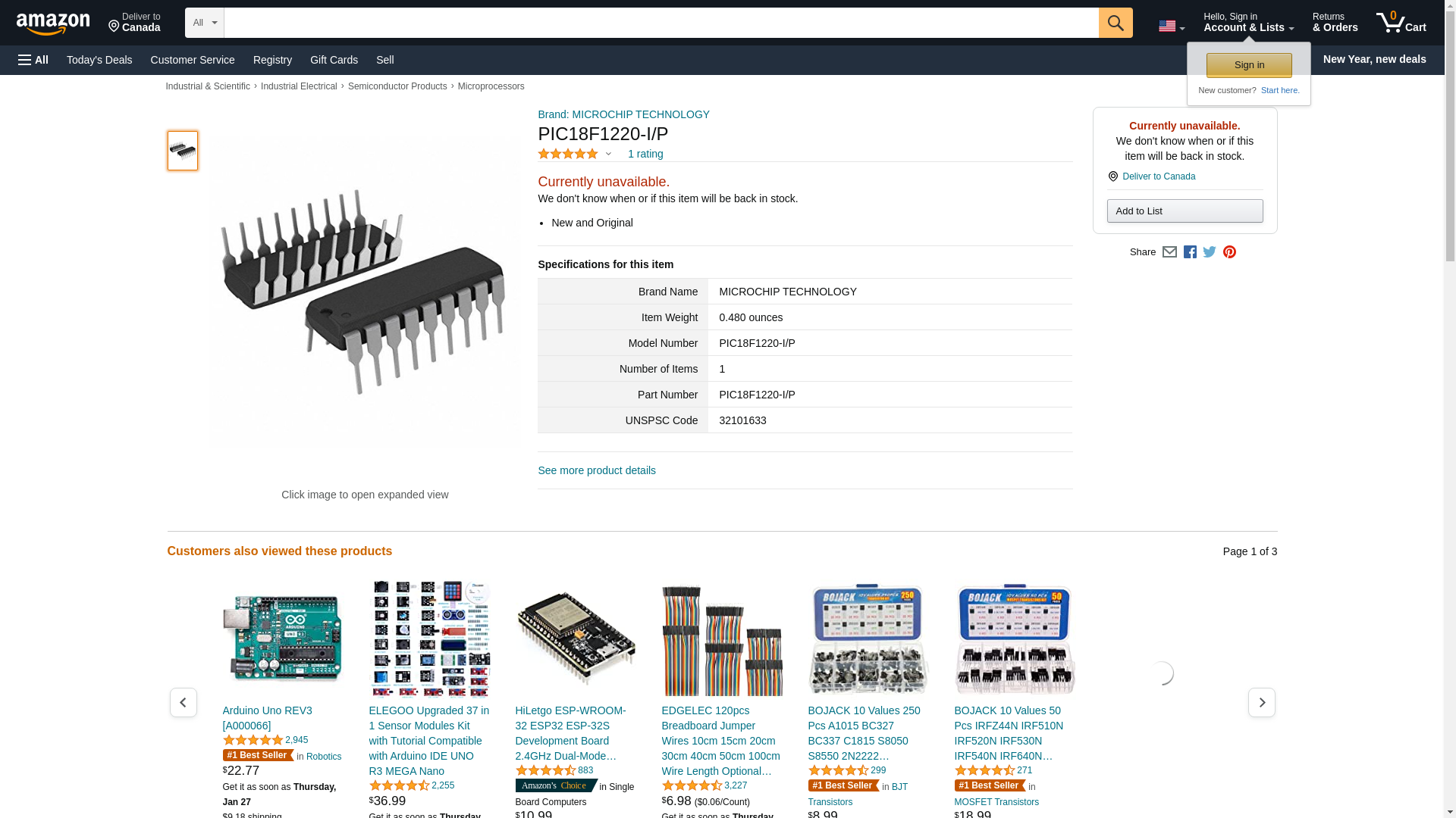 | PIC18F1220-I/P | 1 | 275 | 1 | 1 @ $4.13, 50 @ $2.64, 75 @ $2.59, 100 @ $2.53, 275 @ $2.48, 500 @ $2.43, 1000 @ $2.38 |