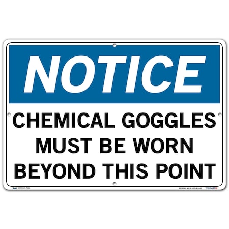 Vestil Notice Sign SI-N-55-D-AL-040 55 18.5X12.5 Aluminum .040 Chemical Goggles Must Be Worn Beyond This Point
