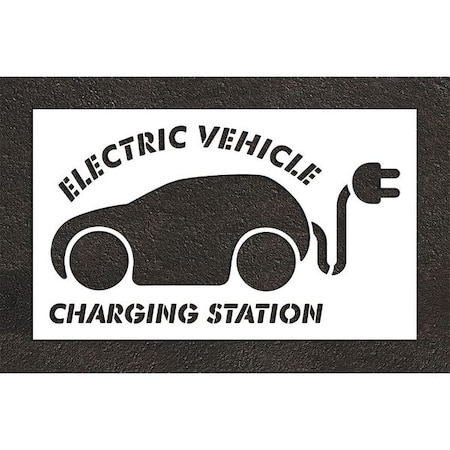 Pavement Stencil, Character Height 48 In., Character Width 82 In., Material Polyethylene, Thickness 0.125 In., Overall Height 56 In., Overall Width 89 In., Self-Adhesive No, Magnetic/Nonmagnetic Nonmagnetic, Reusable Yes, Number of Pieces 1, Color White, Stencil Type Symbol, Stencil Application Parking Lot, Stencil Character Electric Car Logo, Interlocking No, Duty Heavy