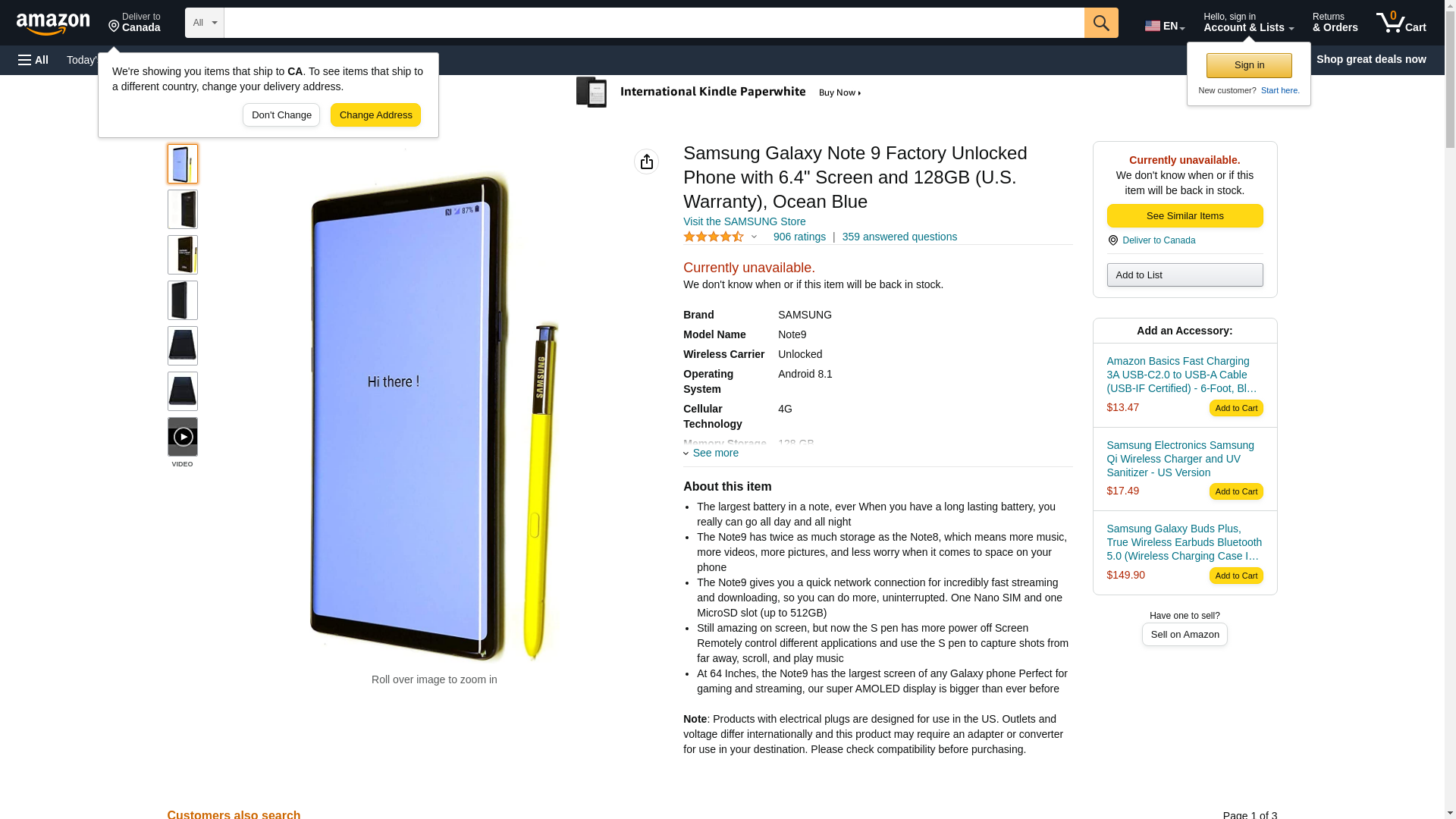 Samsung Galaxy Note 9 Factory Unlocked Phone with 6.4" Screen and 128GB (U.S. Warranty), Ocean Blue