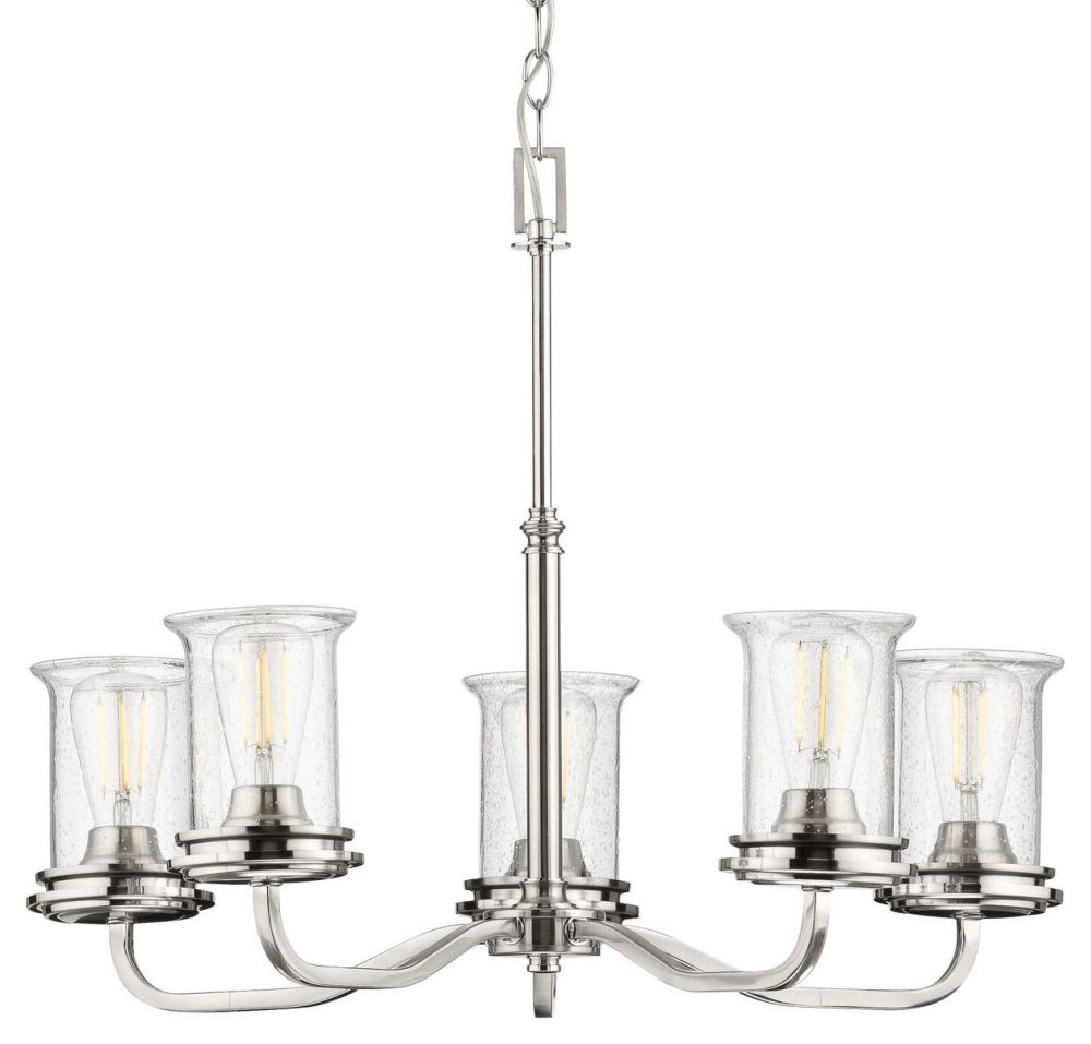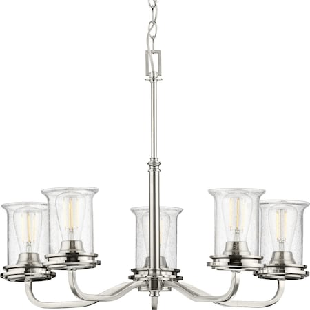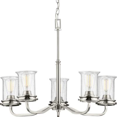 Progress Lighting Winslett Collection 5-Light Clear Seeded Glass Coastal Chandelier Light Brushed Nickel