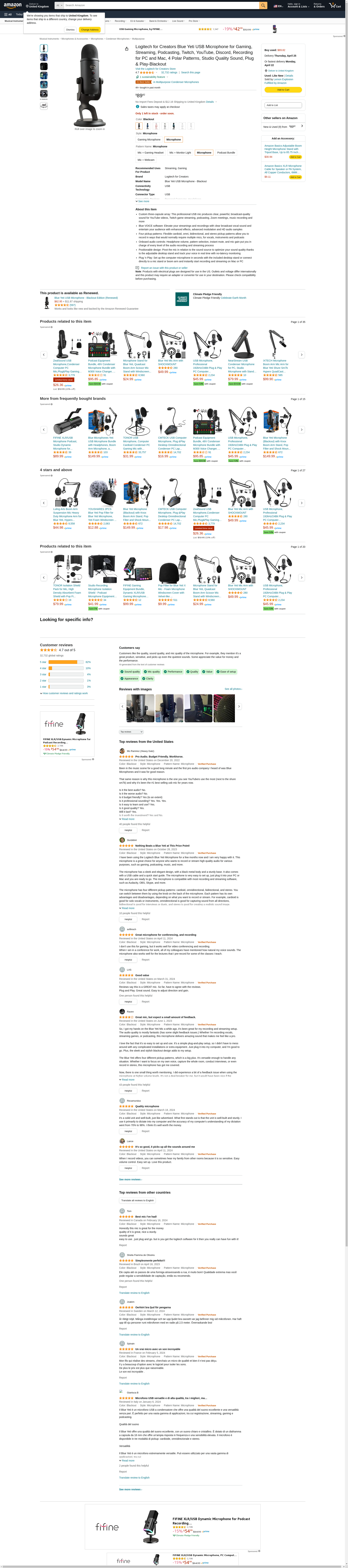 Logitech for Creators Blue Yeti USB Microphone for Gaming, Streaming, Podcasting, Twitch, YouTube, Discord, Recording for PC and Mac, 4 Polar Patterns, Studio Quality Sound, Plug & Play-Blackout