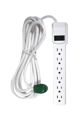 GoGreen Power 6 Outlet Surge Protector, 12' cord, White, GG-16103M-12 | Quill.com