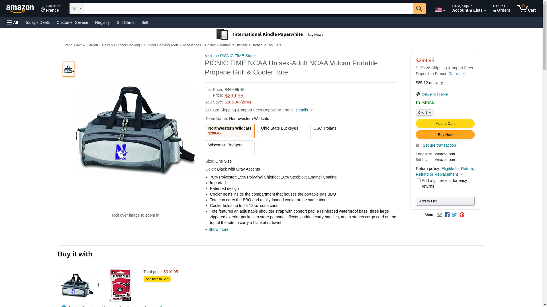 770-00-175-434-0 NCAA Team: Northwestern Features: -Includes 1 portable LP (propane) BBQ grill with lid, 1 black drawstring bag to hold the grill, instructions sheet, and three stainless steel tools with aluminum handles and non-slip thumb grips (1 large spatula featuring a built-in bottle opener, grill scraper, and serrated edge for cutting, 1 pair of tongs, and 1 BBQ fork). -NCAA collection. -1 combination storage bag and cooler tote (Cooler is fully-detachable from the storage bag; can be used as a stand-alone cooler). -Patented design. -Cooler nests inside the compartment that houses the portable gas BBQ. -Tote can carry the BBQ and a fully-loaded cooler at the same time. Color: -Black with silver trim. Material: -Fabric. Dimensions: -Lid: 16.7" x 10.8" x 5.1" . Overall Height - Top to Bottom: -12". Overall Width - Side to Side: -14.625". Overall Depth - Front to Back: -21". Overall Product Weight: -18.5 lbs.