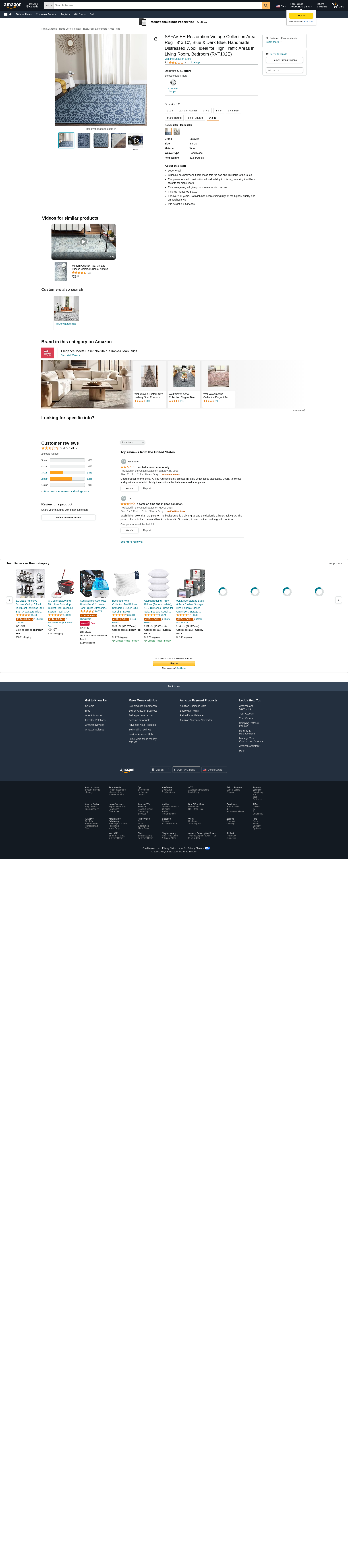 Safavieh RVT102E-8 Restoration VIntage Large Rectangle Area Rug, Blue & Dark Blue - 8 x 10 ft.