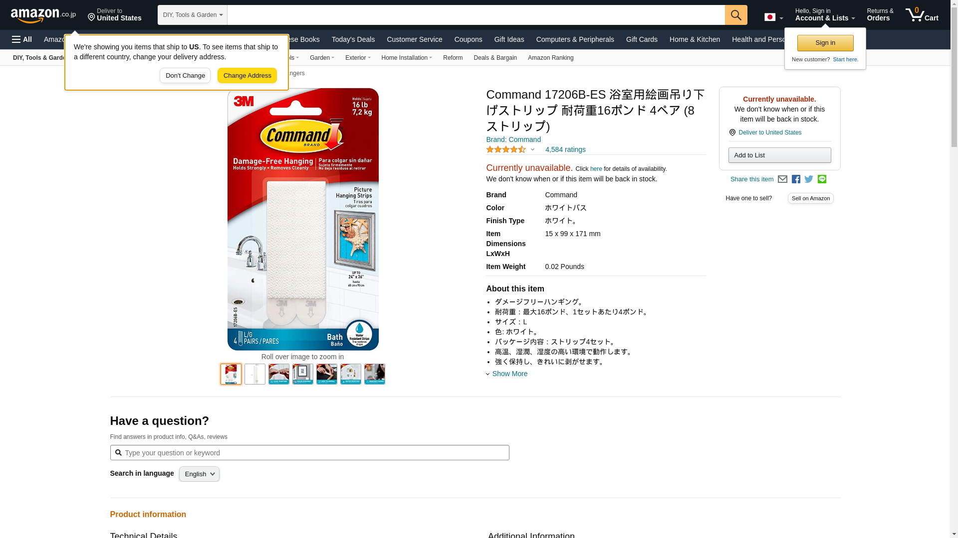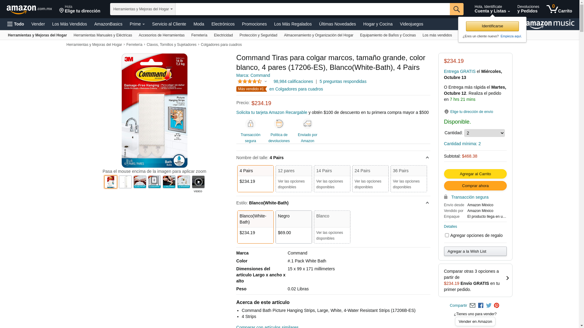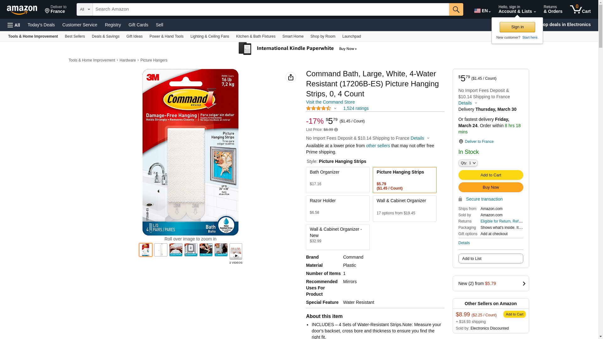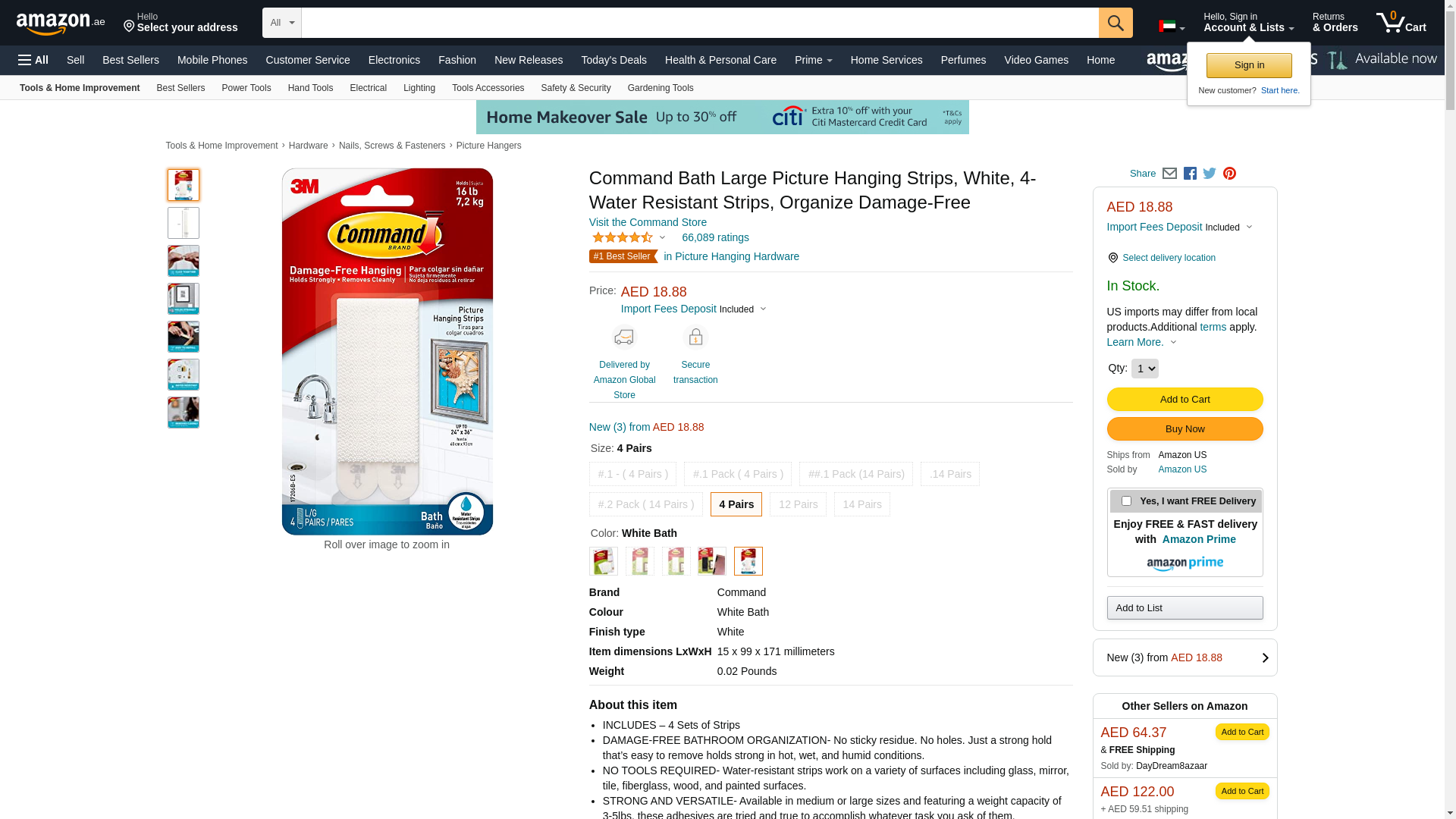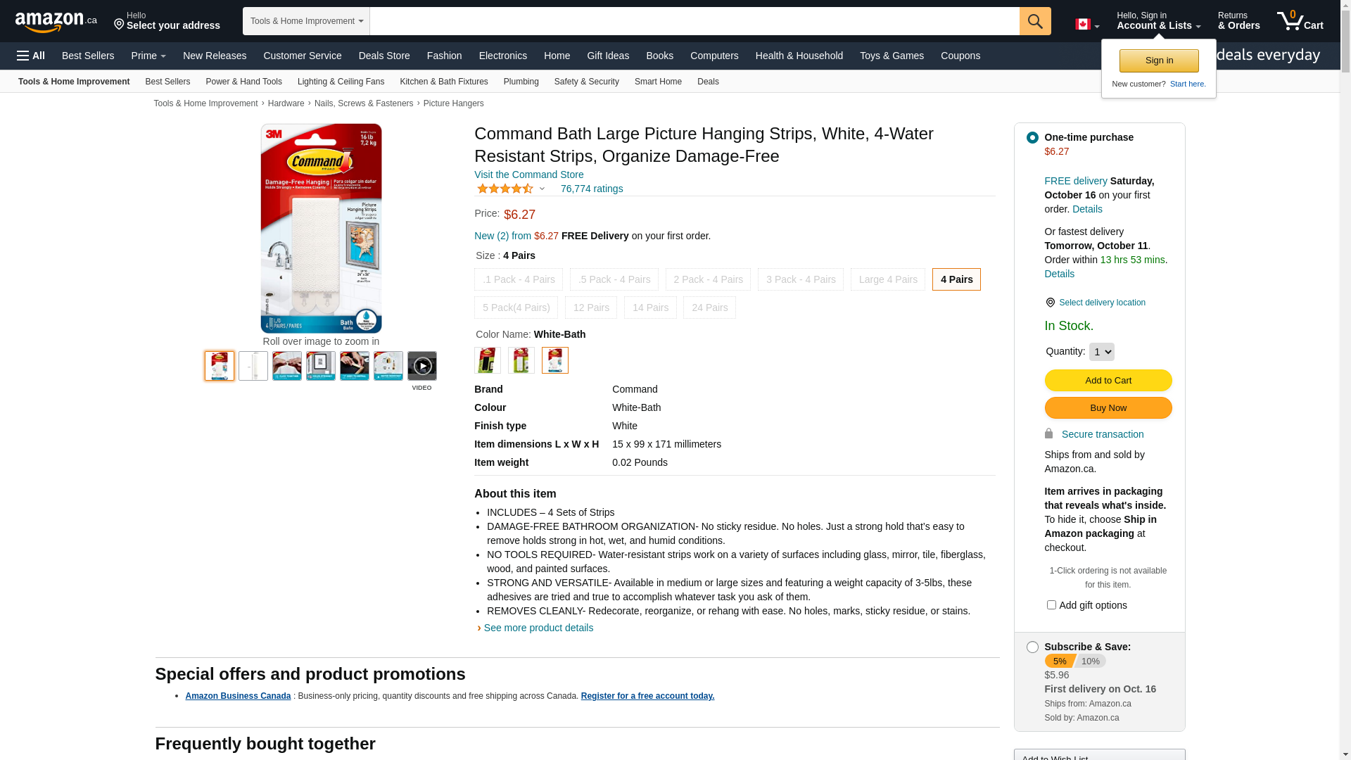 Command, Large, Water Resistant (17206B-ES) Picture Hanging Strips, 4 Pairs, White Bath, 4 Count