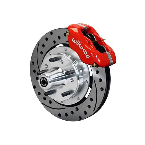 Wilwood 140-12022-DR Forged Dynalite Pro Series 12.19" Front Hub Big Brake Kit With Drilled Rotors and Red Calipers, Compatible with 1965-1968 Chevy Bel Air, Biscayne, Caprice, Impala With Front Drum *** HIghly recommended by Accesspeed customers, FDL Big Brake Front Hub Kits provide the added advantage of larger diameter brake rotors for traditional non-ABS spindles on American muscle cars and vintage rods. Forged billet Dynalite calipers, 12.19" diameter rotors, and high performance Wilwood brake pads generate big brake stopping power to compliment wheel, tire, and suspension upgrades on all types of custom show and performance street / strip machines. A full range of options for caliper finish and rotor design provide custom builders with the ability to personalize the style and performance requirements of the mildest to the wildest machines. This brake kit does not include brake lines. Wilwood Flexline brake lines are necessary to complete the installation of the kit and must be ordered separately. See below for brake line kit options: Wilwood Flexline Brake Line Kit # WIL-220-8307. *This Brake Kit may require 15-inch or larger wheels. Please refer to the wheel clearance diagram to check to see if it will fit your specific wheel. THIS BRAKE KIT HAS A HUB OFFSET OF: +.13 This Hub Offset will move the wheels inward or outward from the fender by this amount on each side of the vehicle.