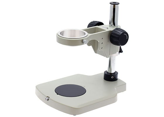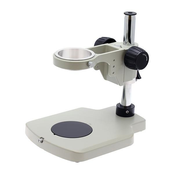 The Aven 26800B-509 lightweight and compact stand is ideal for examining small parts and where bench space is a premium. The 26800B509 has a rack & pinion focus mount with fine focusing knobs. Will accept 74 mm bodies. NOTE: This stand not suitable for SPZ Series microscopes with 0.5x lens as vertical post is not long enough to acco mmodate the working distance. Safety clamp included