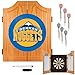 Bring the game to your game room, garage or collection with an officially licensed beveled wood dart cabinet. Enjoy competition among friends while pre-gaming, during halftime or at the after party. It includes a high-quality, self-healing sisal fiber dartboard, 6 steel tipped darts and dry-erase scoreboard, out chart, marker and mounting supplies.