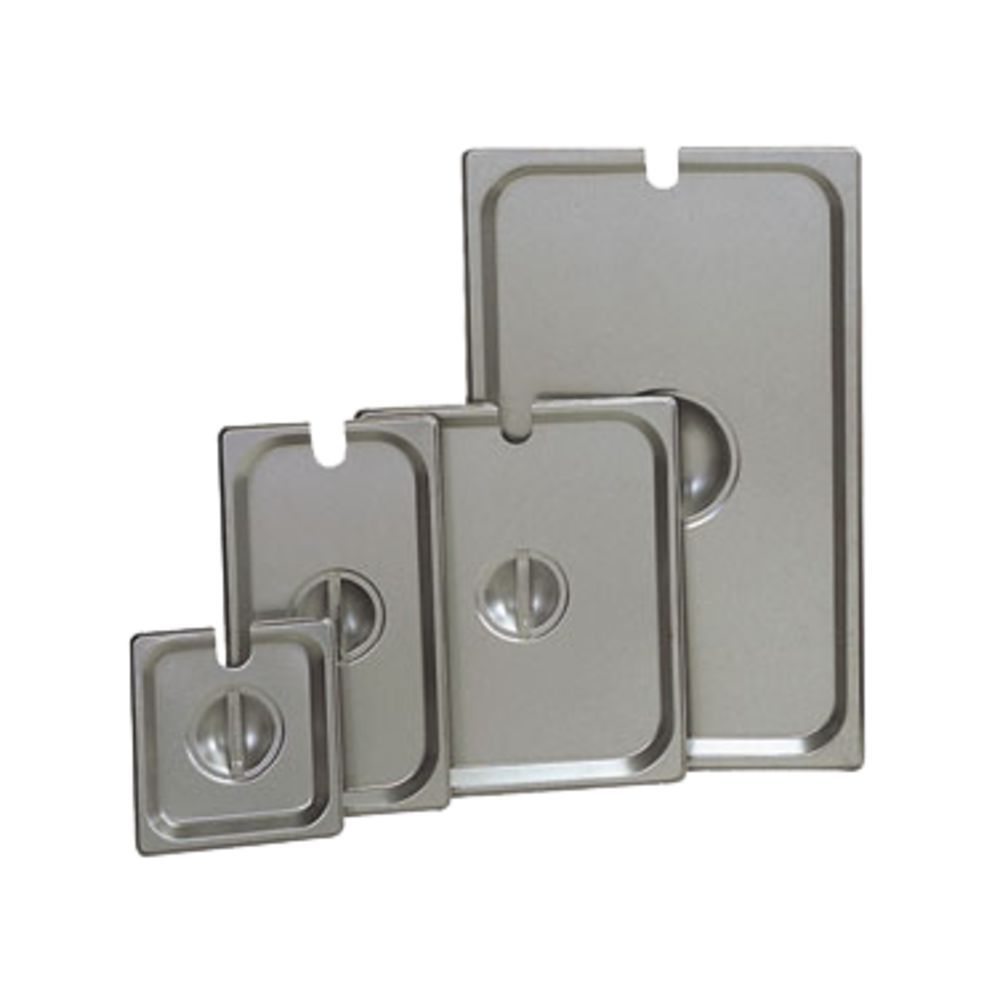 Steam Table Pan Cover, 1/9 size, notched with handle, stainless steel Features Manufacturer's Category: Steam Table Pan Cover, Stainless Size: 1/9 Size Cover Type: Notched With Handle