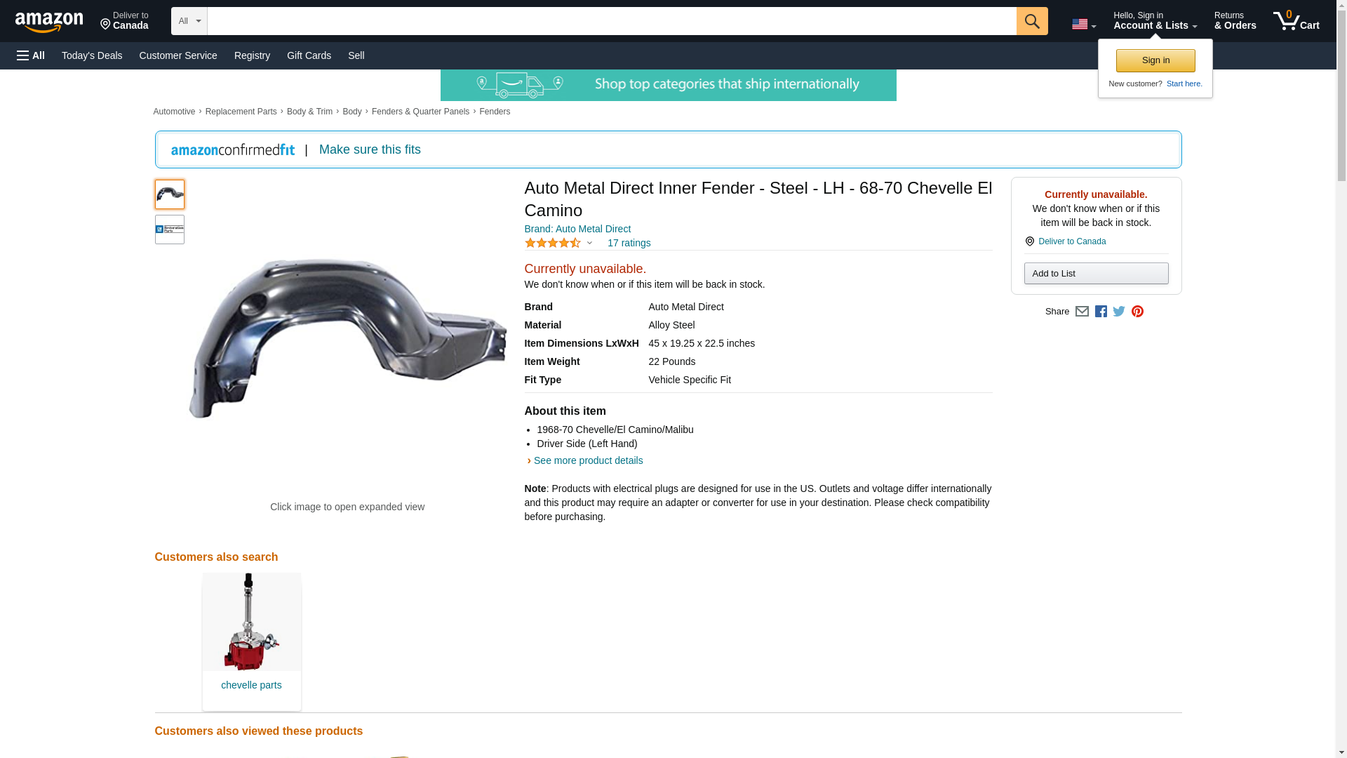 Auto Metal Direct Inner Fender - Steel - LH - 68-70 Chevelle El Camino
