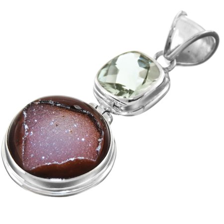 <p></p> <ul> <li>Bail ~5mm</li> <li> Material 925 sterling silver, Druzy Agate(17mm), Prasiolite(10mm)</li> <li> Dimension 44x20mm(1 3/4x13/16") incl. bail</li> <li> Genuine handmade Balinese silver craftsmanship</li> <li> No guesswork! You will receive the actual piece pictured</li> </ul>