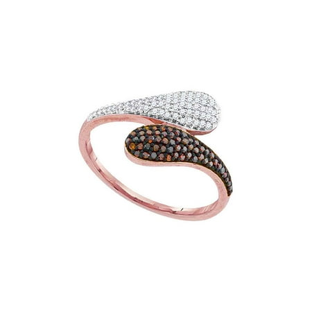 <ul> <li>10kt Rose Gold</li> <li>1/4 Carats total weight</li> <li>Widest point width: 9 mm (.35 inches )<br />; Width of shank: 2 mm</li> <li>1.99 grams (approximately)</li> <li>Ring size selectable. All diamonds are natural and conflict-free in origin.</li> </ul>