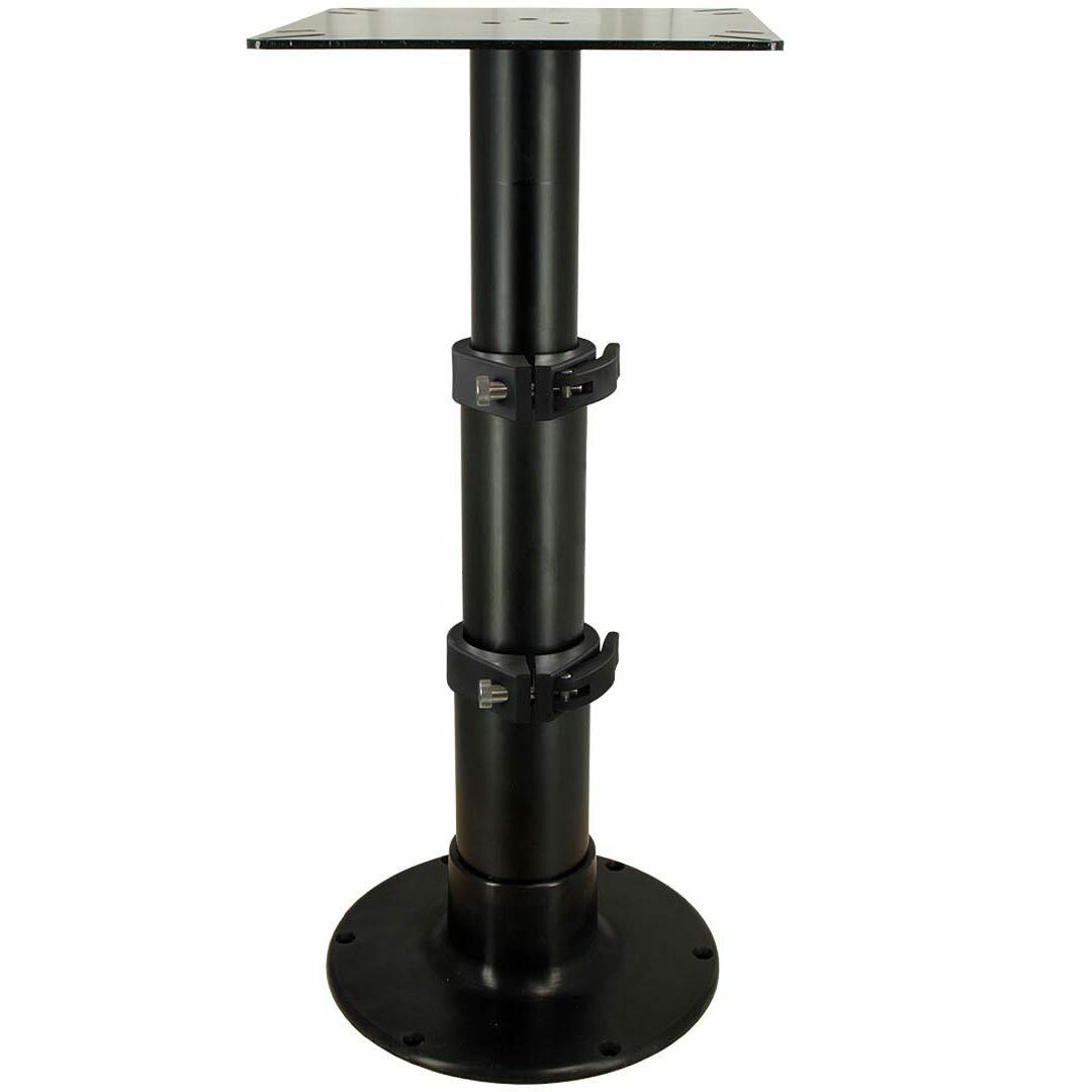 Springfield Part #1660230BLK<br /><br />Ped, 3 Stage Table,Black Anod<br><br>Ped 3 Stage Tableblk Anod<br>12-1/2" square table mount. 12" diameter base with 11" hole pattern for added stability. Nylon clamping bushings with stainless steel hardware. Air-Powered height adjustment, simply release to raise or push down and lock in place. No pumps or power required. Great for boat, RV, deck, and patio.<br><br>Attributes:<br>Height: 12-3/4", 20", 28"<br>Finish: Black Anodized<br><br /><br />Package Quantity = 1