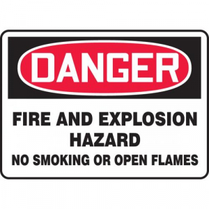 Danger Fire And Explosion Hazard No Smoking Or Ope 10X14 .040 Aluminum Sign