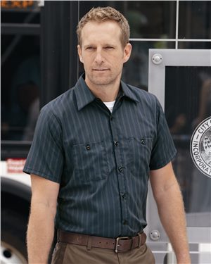 Red Kap B87130267 Premium Short Sleeve Work Shirt, Light Blue & Navy Stripe - 2XL