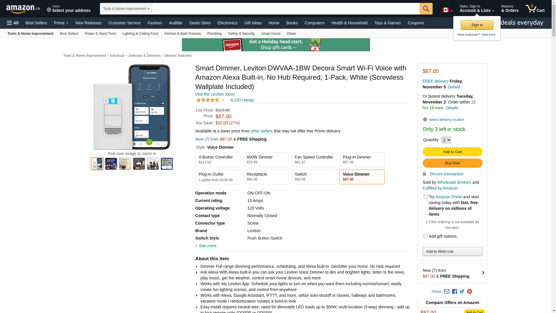 ![]() gordonelectricsupply.com | DWVAA-1BW | 1 | Leviton Orders Over $750 Usually Ship the Next Day, Otherwise3-5 Days | 1 | 1 @ $137.19 |