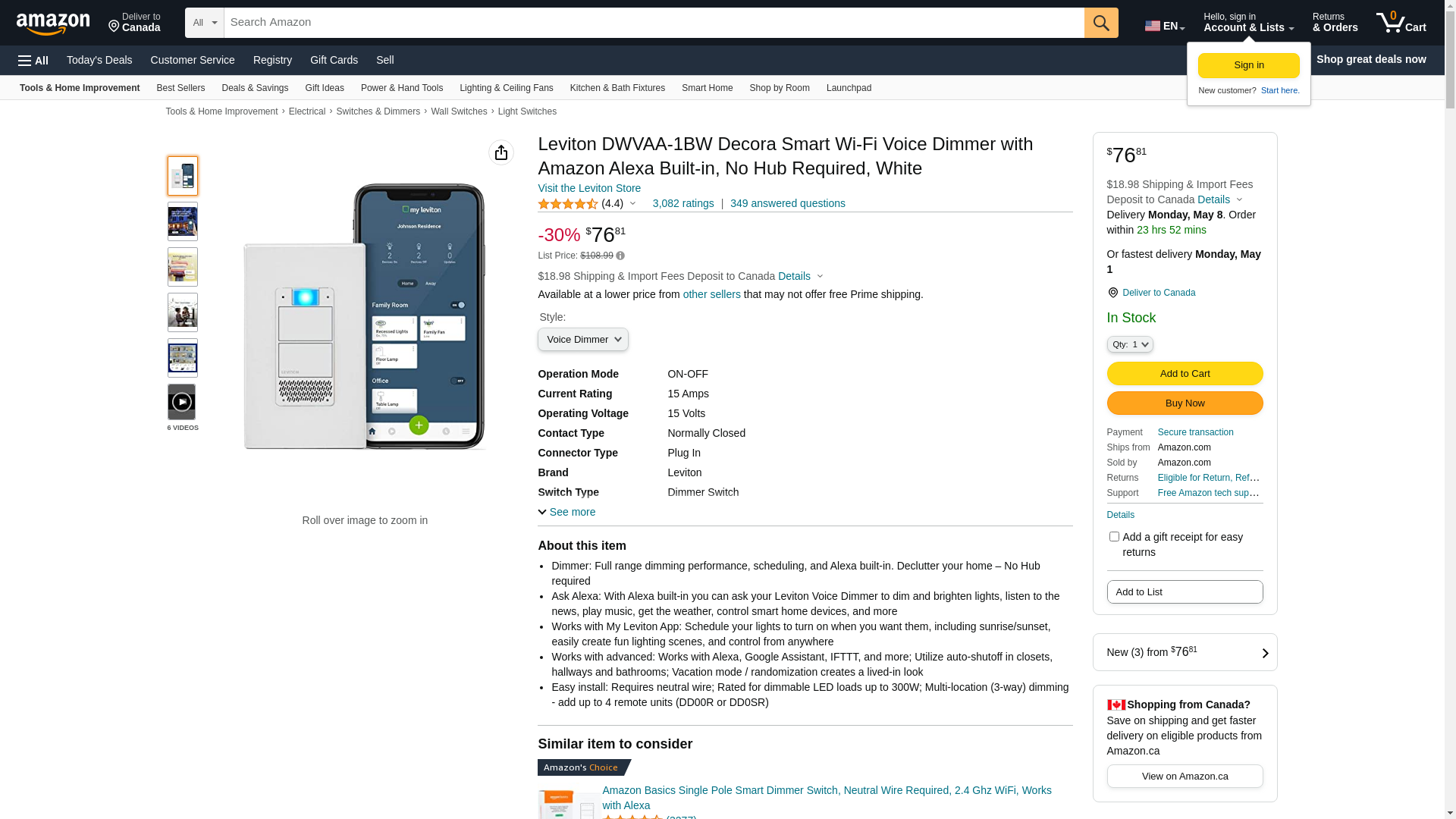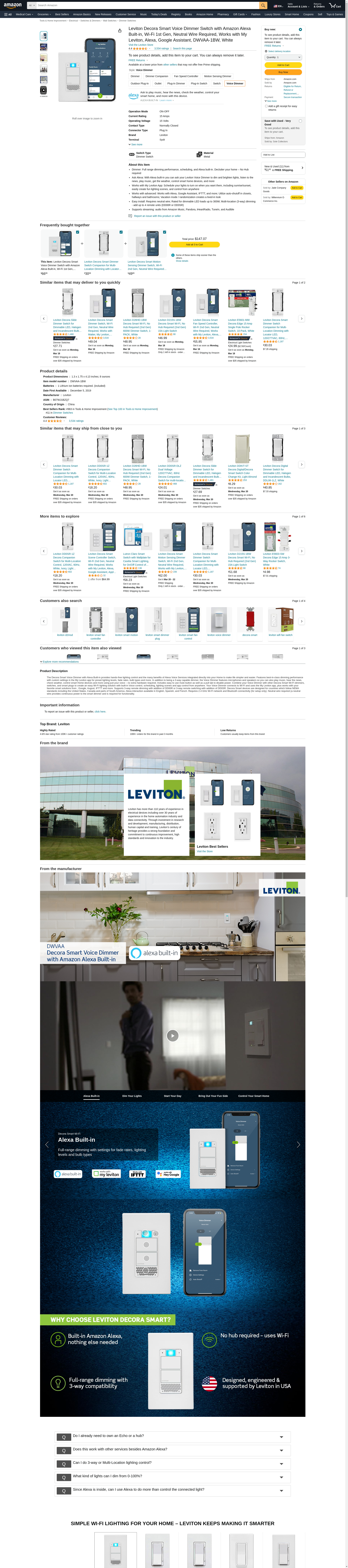 DWVAA-1BW Decora Smart Voice Dimmer; Alexa from LEVITON