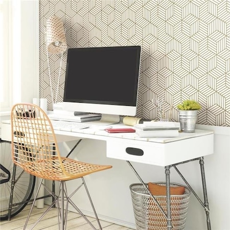 RoomMates RMK10704WP Metallic Gold Striped Hexagon Peel and Stick Wallpaper