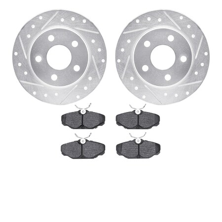 Dynamic Friction Company Rear Brake Rotors-Drilled and Slotted-Silver with 3000 Series Ceramic Brake Pads 7302-54087
