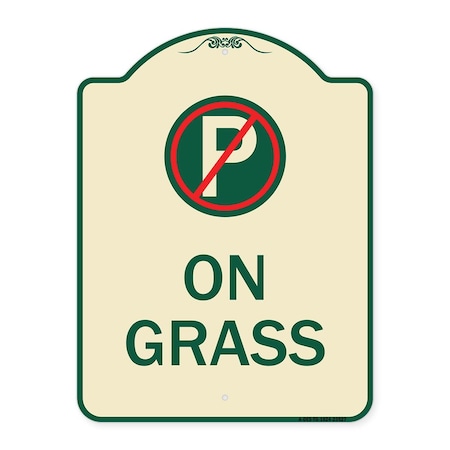 On Grass With No Parking Symbol Heavy-Gauge Aluminum Architectural Sign