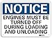 Notice Sign, Vertical Rectangle, Number of Printed Sides 1, English, Sign Format Traditional OSHA, Sign Legend Engines Must Be Turned Off During Loading And Unloading, Sign Legend Background Color White, Sign Legend Style Text