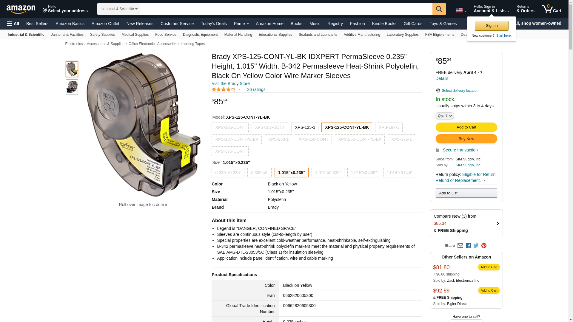 BRADY - XPS-125-CONT-YL-BK - WIRE & CABLE HEAT-SHRINKABLE MARKER LABEL SLEEVES