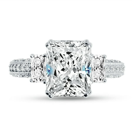 <ul> <li>Center Stone Size: 3.0ct. , 10mm * 8mm</li> <li>Total Carat Weight: 4.0ct.</li> <li>*** Highest Quality CZ Cubic Zirconia ***</li> <li>*** Solid 14k White Gold GUARANTEED, Authenticated with a 14k Stamp ***</li> <li>*** Elegant Velvet Ring Box Included ***</li> </ul>