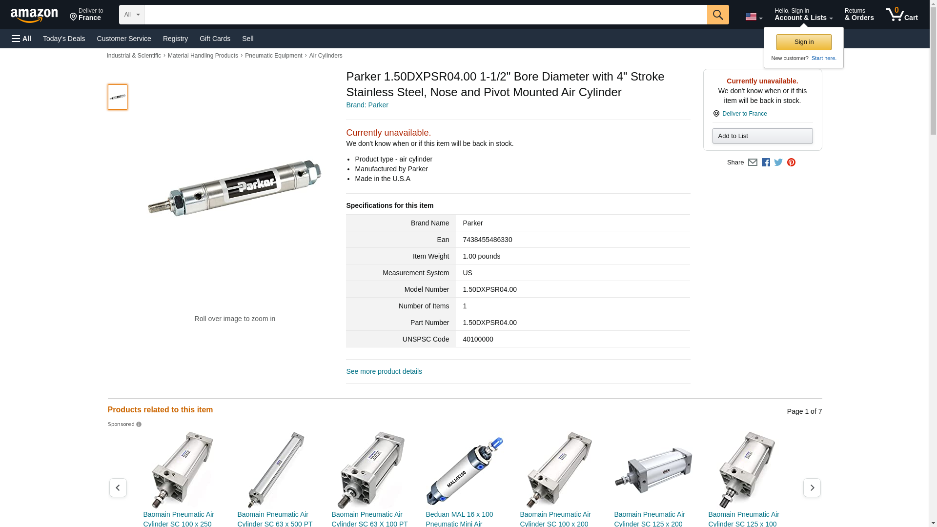 Parker 1.50DXPSR04.00 1-1/2" Bore Diameter with 4" Stroke Stainless Steel, Nose and Pivot Mounted Air Cylinder