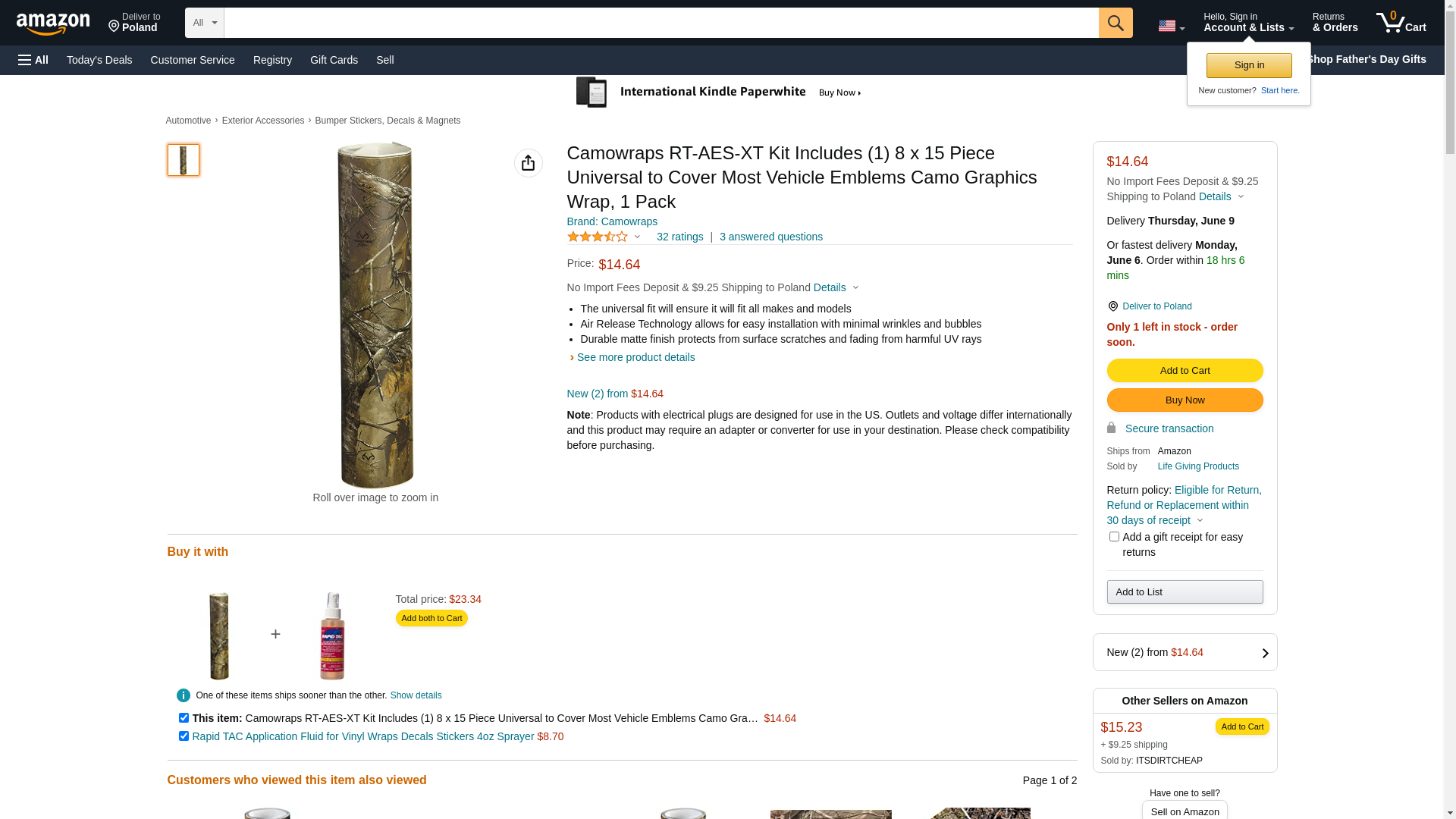 Camowraps RT-AES-XT Kit Includes (1) 8 x 15 Piece Universal to Cover Most Vehicle Emblems Camo Graphics Wrap, 1 Pack