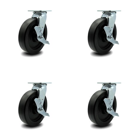 Polyolefin Swivel Caster w/Main. Free Bearings Set of 4 w/8" x 2" Black Wheels - Includes 4 Swivel w/Top Lock Brakes - 3600 lbs Total Capacity - Service Caster Brand