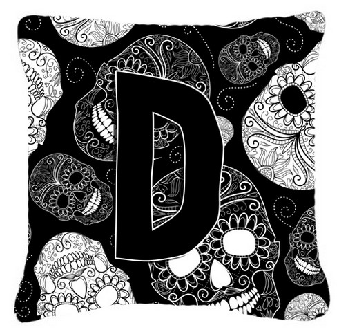 Carolines Treasures CJ2008-DPW1414 Letter D Day Of The Dead Skulls Black Canvas Fabric Decorative Pillow