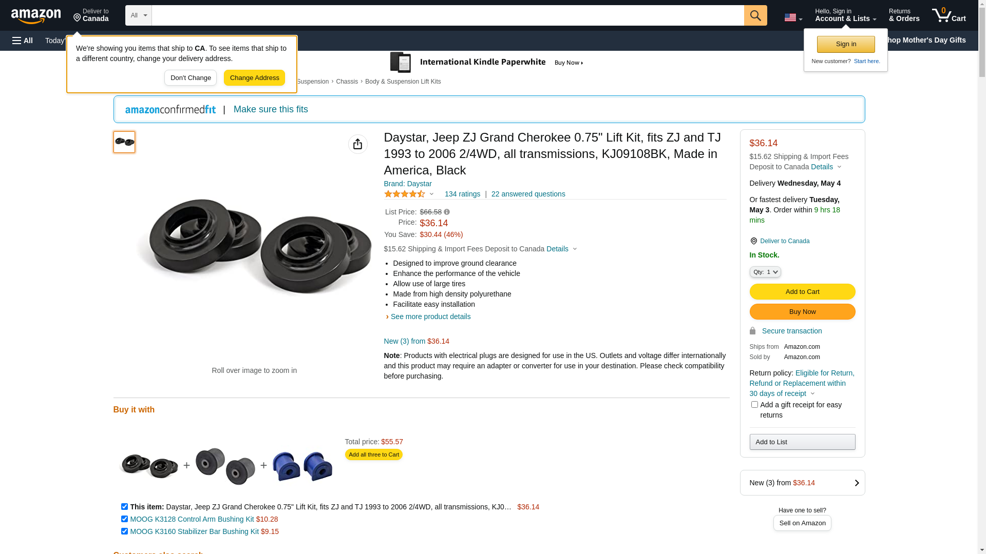 Daystar, Jeep ZJ Grand Cherokee 0.75" Lift Kit, fits ZJ and TJ 1993 to 2006 2/4WD, all transmissions, KJ09108BK, Made in America, Black