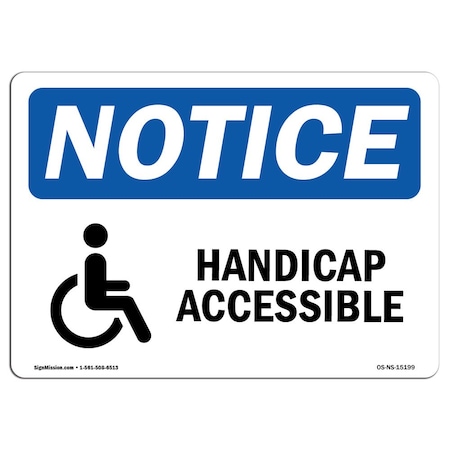 OSHA Notice Sign, NOTICE Accessible With Symbol, 7in X 5in Decal