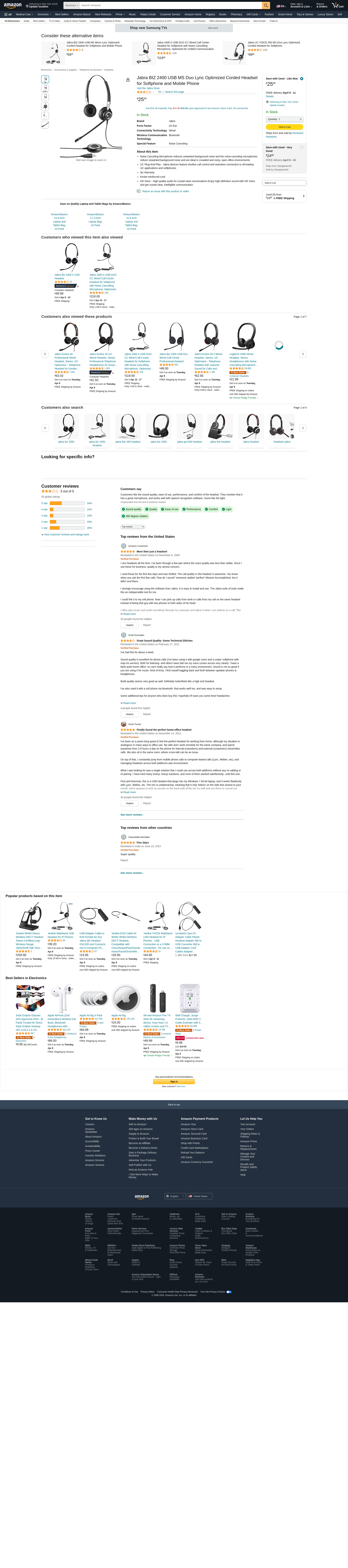 Jabra BIZ 2400 USB MS Duo Lync Optimized Corded Headset for Softphone and Mobile Phone