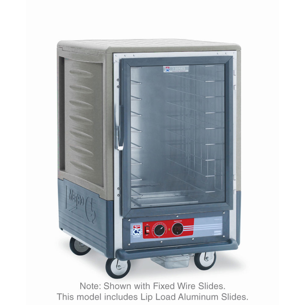 Metro C535-HXFC-L-GYA C5 3 Series Insulated Holding Cabinet, 1/2 Height, Full Length Clear Door, Lip Load Aluminum Slides, 220-240V, 50/60Hz, 1681-2000W, Gray