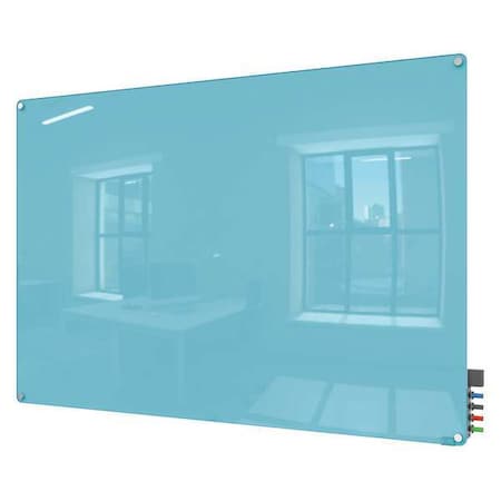 Ghent Harmony Magnetic Glass Whiteboard with Radius Corners, 3'H x 4'W, Blue.<br><br>- 4' x 3'.<br>- Frameless.<br>- Super hard, non-porous glass surface.<br>- Tempered 1/4" thick glass with rounded-corners.<br>- Product does not include mounting hardware.<br>- 1" diameter satin aluminum standoff hangers create 1 1/4" spacing between wall and glass markerboard.<br>- Features a unique, clear acrylic rear-mounted accessory holder, complete with markers and eraser.<br>- Includes four rare earth magnets with magnetic version (extra magnets available).<br><br>- Sold as 1 Each.