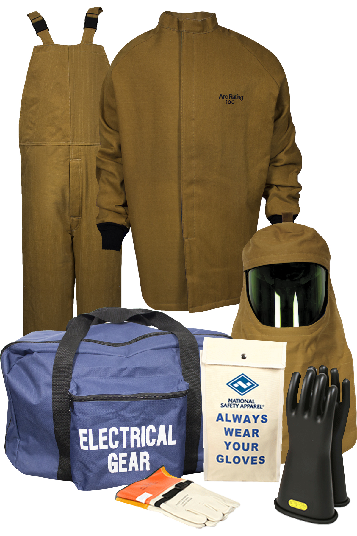 - Kits Include: FR DuPont Nomex/Kevlar Short Coat & Bib Overall; Class 2 Voltage Gloves; Glove Protectors; Arc Hood with Faceshield; Safety Glasses